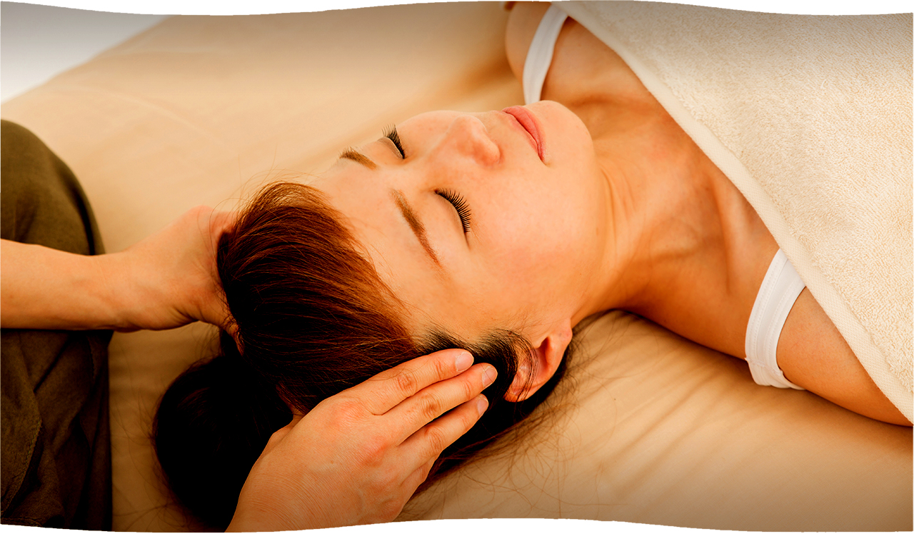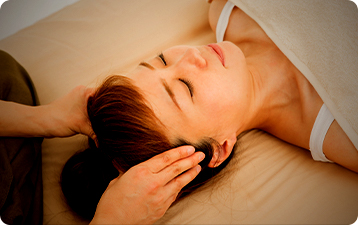 手の温かさと程よい刺激が気持ちいい!頭皮から顔の筋肉を優しくほぐします。